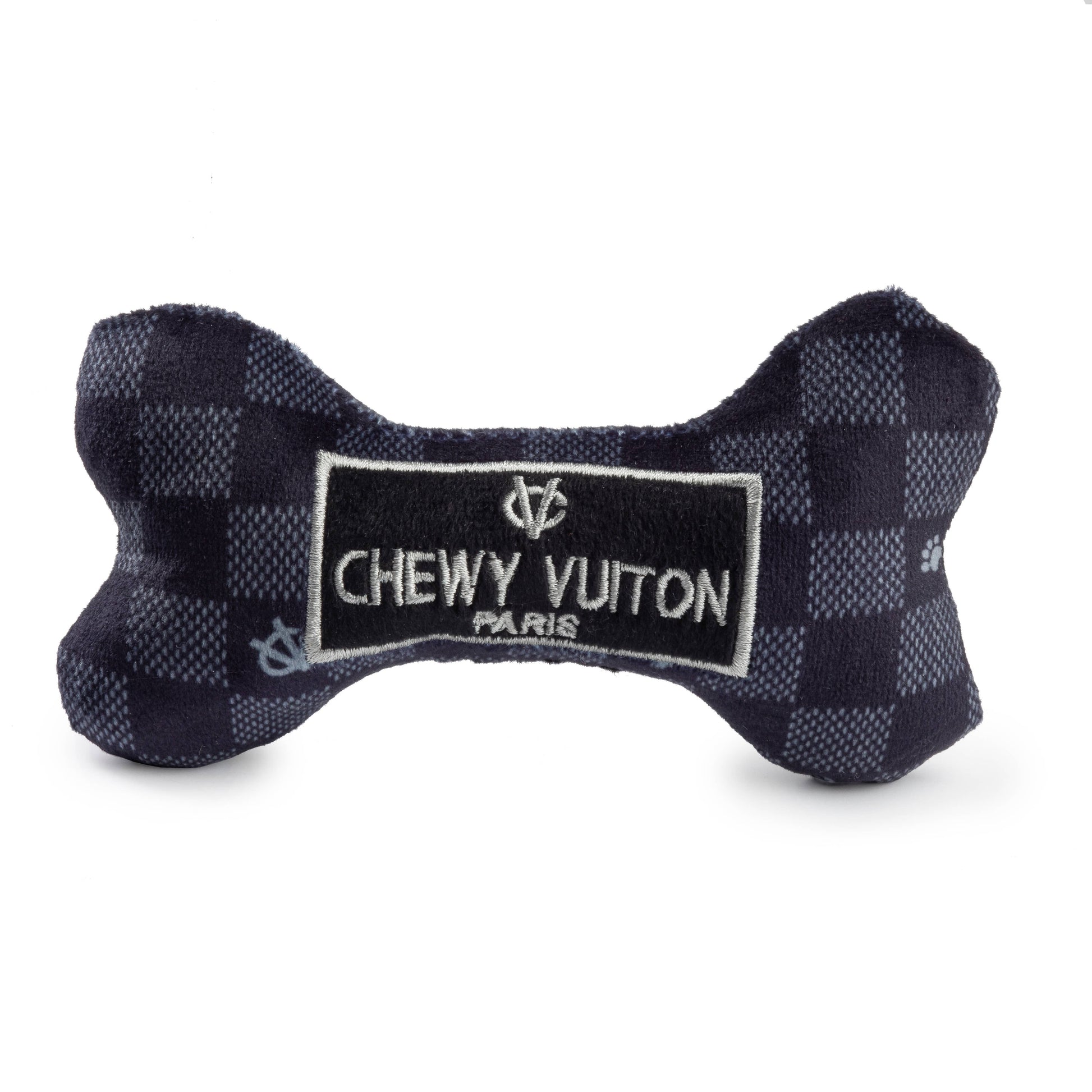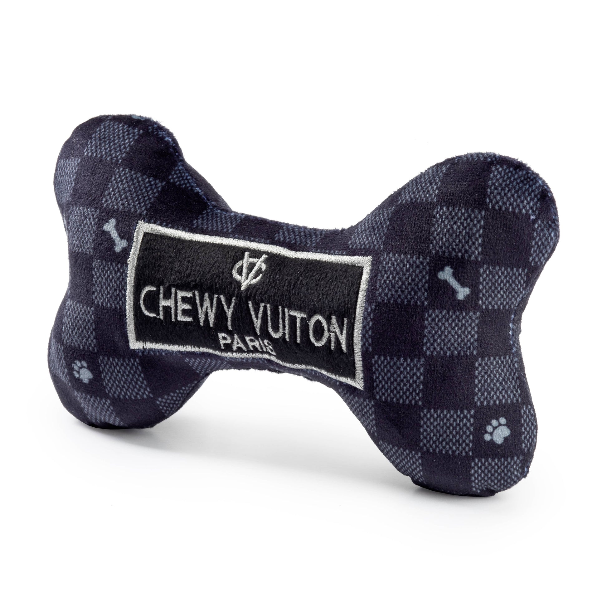 The Chewy Vuiton Black Checker Bone Toy from Haute Diggity Dog takes the iconic checkered pattern and gives it a bold, moody makeover. The deep black checker design covers a soft, luxurious plush exterior that is made to be chewed, squeezed and carried with pride. A hidden squeaker inside keeps even the most easily distracted dogs entertained long after the novelty of looking this good has worn off.